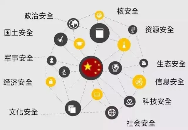 ????? ?當代國家安全包括16個方面的基本內(nèi)容:政治安全、國土安全、軍事安全、經(jīng)濟安全、文化安全、社會安全、科技安全、網(wǎng)絡(luò)安全、生態(tài)安全、資源安全、核安全、海外利益安全、生物安全、太空安全、極地安全、深海安全。